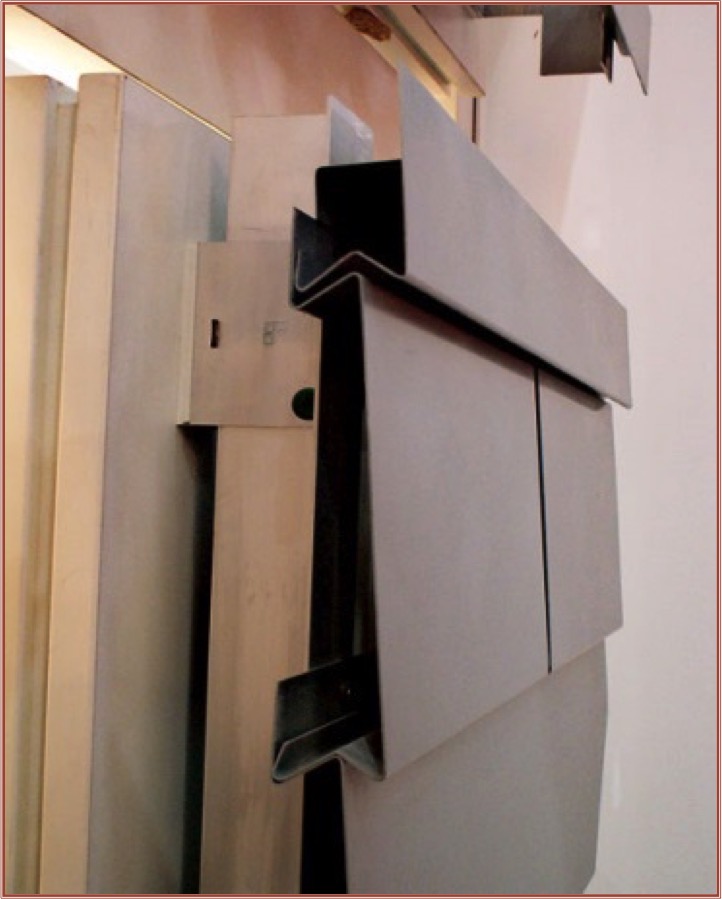Fasádní obklady potom montujeme svisle na nosnou konstrukci a bočně spojujeme perem a drážkou. Používáme nerezavějící šrouby s čočkovitou hlavou, 4 × 40 mm. Zašroubují se do takové míry, aby nevznikaly vlivem pnutí ve spoji vypukliny povrchu, resp. vznik vypuklin lze tímto způsobem dodatečně korigovat.